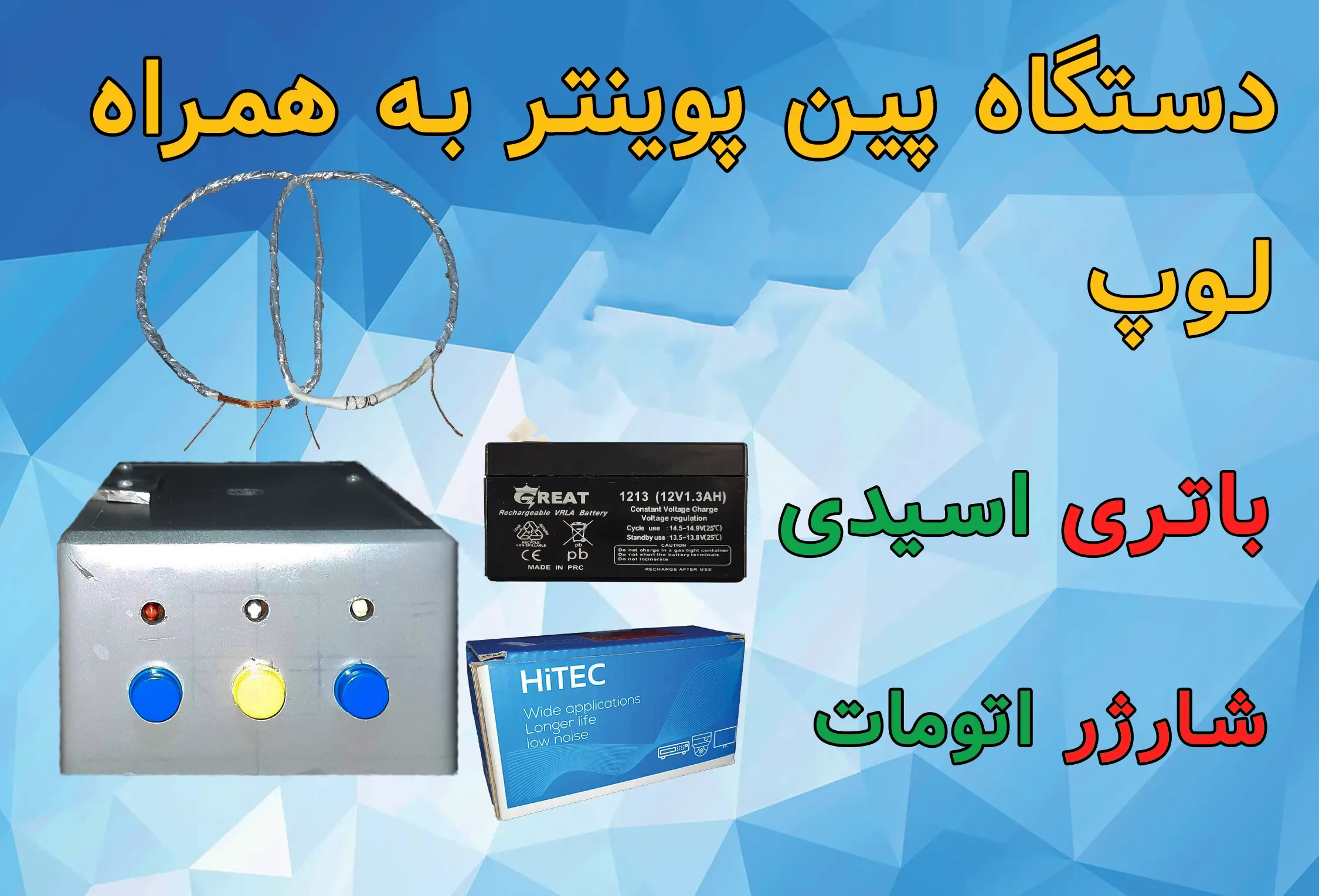 تغذیه این دستگاه ، یک باتری اسیدی 12 ولت است به همراه مدار ، کلید ها و بلندگو در یک باکس قرار داده ام.